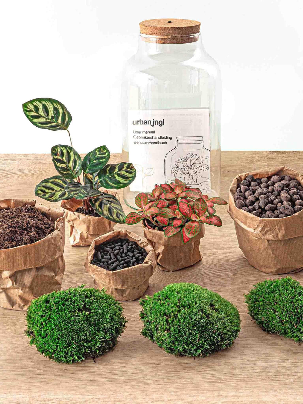 Hvert sæt er sammensat af alt, hvad der er nødvendigt for at lave et terrarium: en kvasi-autonom og selvforsynende miniaturehave. Ideel, når du ikke har en grøn tommelfinger!